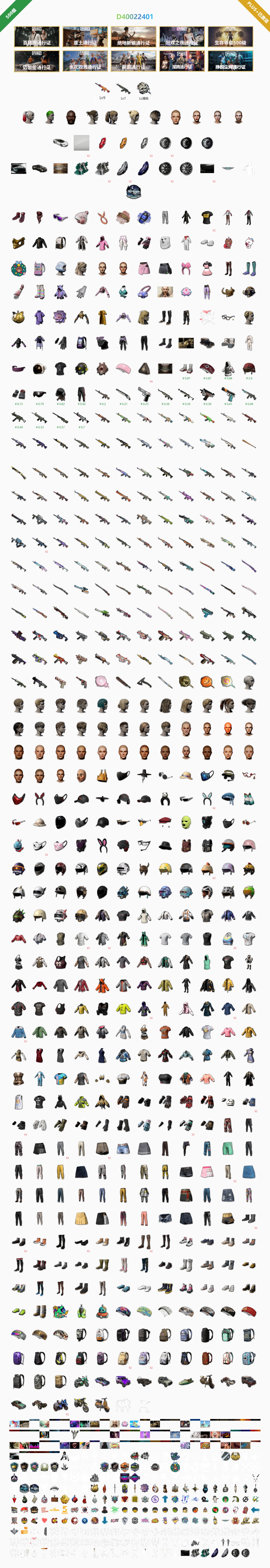 D40022401 南瓜九级 青龙七级 白虎锅三级 丑女 丑男 黑鬼 脏辫 双马尾 丸子头 迈凯伦 阿斯顿马丁 红鞋 红面巾 滑雪套 发带 烟雾枪 烟雾弹 染血运动裤 王者大衣 金面 悲喜套 电磁背包 4阶段400