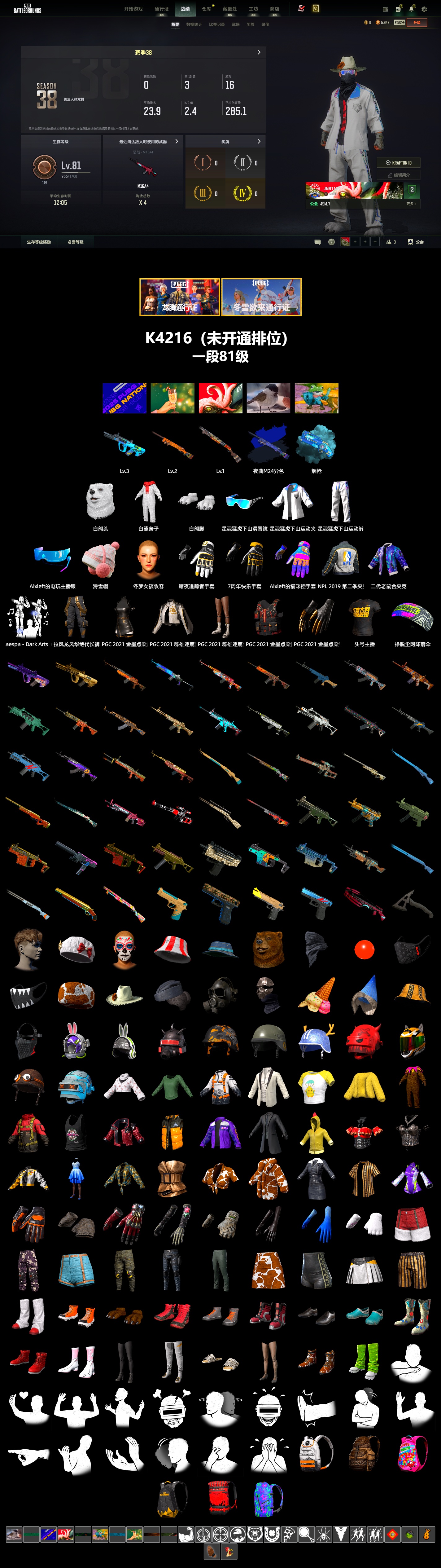 【商品标题】绝地求生(PUBG)_游戏账号交易_账号编号K4216出售_闲游盒_账号买卖