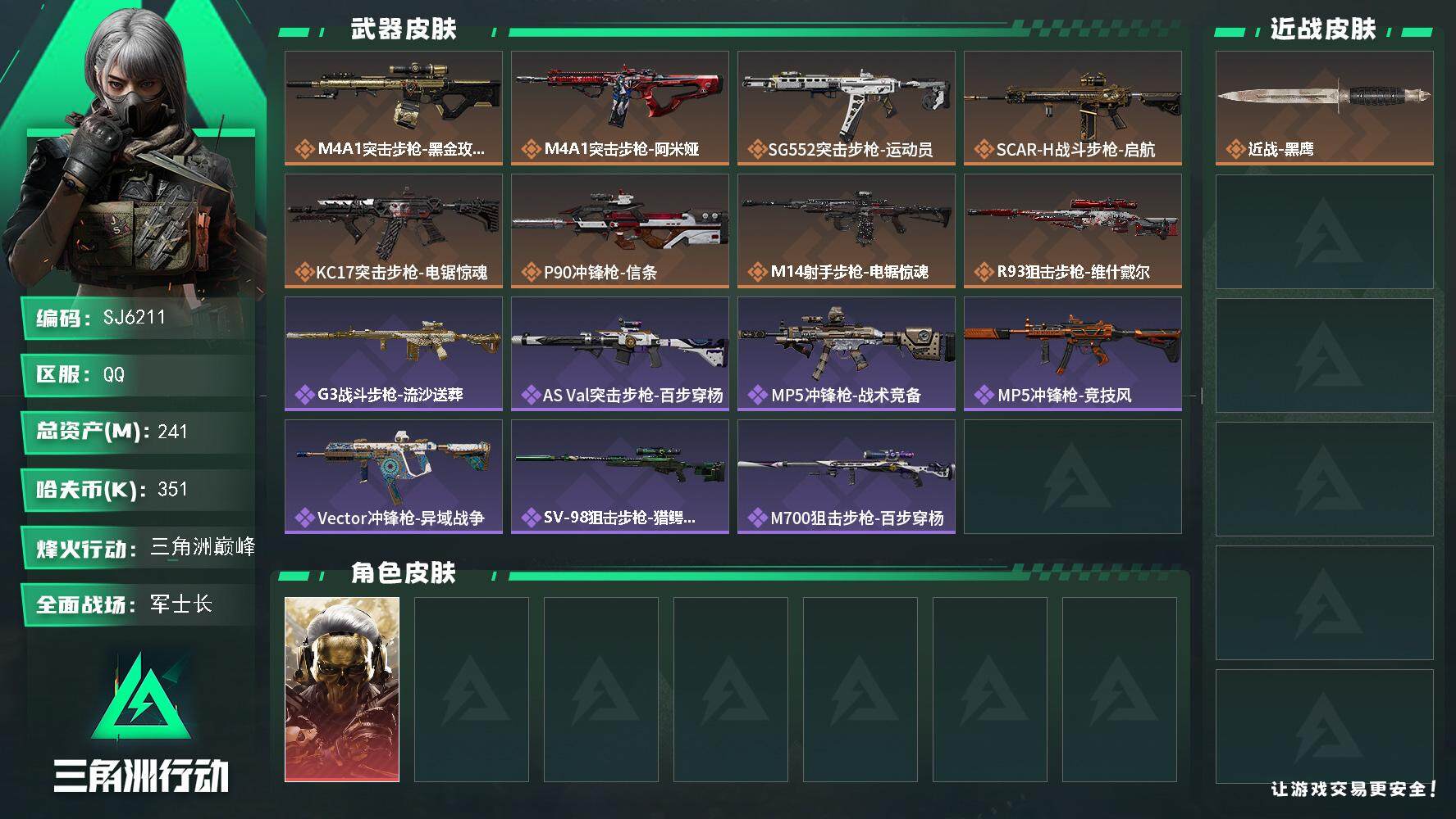 【商品标题】三角洲行动游戏账号交易平台_三角洲行动账号估价买卖_账号编号SJ6211出售_闲游盒_账号买卖