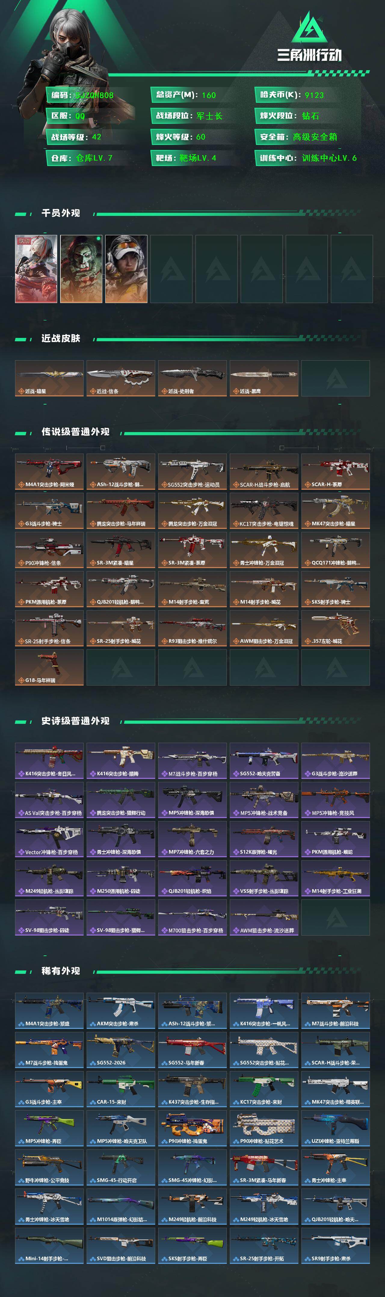 【SJZQH808】总资产(M):160M/哈夫币(K):9123K/哈夫币(K):9123K/传说枪皮数:26/全面战场等级:42_段位:军士长/烽火地带等级:60_段位:钻石/骇爪-维什戴尔/红狼-电锯惊魂/露娜-金牌射手/近战-暗星/近战-信条/近战-处刑者/黑鹰/M4A1突击步枪-阿米娅/ASh-12战斗步枪-鹅鸭杀/SG552突击步枪-运动员/SCAR-H战斗步枪-启航/SCAR-H战斗步枪-荼蘼/G3战斗步枪-骑士/腾龙突击步枪-马年祥瑞/腾龙突击步枪-万金泪冠/KC17突击步枪-电锯惊魂/47突击步枪-暗星/P90冲锋枪-信条/SR-3M紧凑突击步枪-暗星/SR-3M紧凑突击步枪-荼蘼/勇士冲锋枪-万金泪冠/QCQ171冲锋枪-鹅鸭杀/PKM通用机枪-荼蘼/QJB201轻机枪-鹅鸭杀/M14射手步枪-蛮荒/M14射手步枪-缄花/SKS射手步枪-骑士/SR-25射手步枪-信条/SR-25射手步枪-缄花/R93狙击步枪-维什戴尔/AWM狙击步枪-万金泪冠/.357左轮-缄花/G18-马年祥瑞/K416突击步枪-冬日风情/K416突击步枪-腊梅/M7战斗步枪-百步穿杨/SG552突击步枪-哈夫克警备/G3战斗步枪-流沙送葬/AS Val突击步枪-百步穿杨/腾龙突击步枪-猎鳄行动/MP5冲锋枪深海恐惧/MP5冲锋枪-战术竞备/MP5冲锋枪-竞技风/Vector冲锋枪-百步穿杨/勇士冲锋枪深海恐惧/MP7冲锋枪-六套之力/S12K霰弹枪-曙光/PKM通用机枪-蝮蛇/M249轻机枪-丛影谍踪/M250通用机枪-囚徒/QJB201轻机枪-炽焰/VSS射手步枪-丛影谍踪/M14射手步枪-工业狂潮/SV-98狙击步枪-囚徒/SV-98狙击步枪-猎鳄行动/M700狙击步枪-百步穿杨/AWM狙击步枪-流沙送葬/M4A1突击步枪-繁盛/AKM突击步枪-肃杀/ASh-12战斗步枪-繁盛/K416突击步枪-一帆风顺/M7战斗步枪-前沿科技/M7战斗步枪-捣蛋鬼/SG552突击步枪-2026/SG552突击步枪-马年新春/SG552突击步枪-贴花艺术/SCAR-H战斗步枪-荣耀列队/G3战斗步枪-主宰/CAR-15突击步枪-来财/K437突击步枪-生存指令/KC17突击步枪-来财/47突击步枪-精英联盟/MP5冲锋枪-弄臣/MP5冲锋枪-哈夫克卫队/P90冲锋枪-捣蛋鬼/P90冲锋枪-贴花艺术/UZI冲锋枪-亚特兰蒂斯/野牛冲锋枪-公平竞技/SMG-45-行动开启/SMG-45冲锋枪-幻影结构/SR-3M紧凑突击步枪-马年新春/勇士冲锋枪-主宰/勇士冲锋枪-冰天雪地/M1014霰弹枪-幻影结构/M249轻机枪-前沿科技/M249轻机枪-冰天雪地/QJB201轻机枪-哈夫克卫队/Mini-14射手步枪-荣耀列队/SVD狙击步枪-前沿科技/SKS射手步枪-弄臣/SR-25射手步枪-开拓/SR9射手步枪-肃杀/PSG-1射手步枪-主宰/SV-98狙击步枪-星链科技/SV-98狙击步枪-哈夫克航天/SV-98狙击步枪-精英联盟/R93狙击步枪-前沿科技/G18-星链科技/G18-哈夫克航天/VSS射手步枪-噬菌体/M249轻机枪-彩墨涂鸦/G18-彩墨涂鸦/M4A1突击步枪-粉色涂装/M4A1突击步枪-高雅黑/M4A1突击步枪-海色/QBZ95-1突击步枪-高雅黑/QBZ95-1突击步枪-海浪/QBZ95-1突击步枪-海色/QBZ95-1突击步枪-2026/QBZ191突击步枪-三角洲力量/K416突击步枪-几何迷彩/K416突击步枪-高雅黑/K416突击步枪-重击/M16A4突击步枪-高雅黑/AUG突击步枪-浅蓝涂装/M7战斗步枪-红色涂装/M7战斗步枪-重击/SG552突击步枪-浅蓝涂装/SG552突击步枪-海浪/AK-12突击步枪-变色龙/SCAR-H战斗步枪-红色涂装/SCAR-H战斗步枪-数码迷彩/G3战斗步枪-高雅黑/PTR-32突击步枪-黄蜂/PTR-32突击步枪-典雅/CAR-15突击步枪-变色龙/K437突击步枪-磐石/AKS-74U突击步枪-磐石/MP5冲锋枪-海色/MP5冲锋枪-黄蜂/MP5冲锋枪-典雅/Vector冲锋枪-几何迷彩/UZI冲锋枪-海色/野牛冲锋枪-高雅黑/SR-3M紧凑突击步枪-变色龙/M1014霰弹枪-高雅黑/M1014霰弹枪-海浪/M1014霰弹枪-变色龙/M1014霰弹枪-重击/M249轻机枪-黄蜂/M250通用机枪-条纹/QJB201轻机枪-磐石/QJB201轻机枪-典雅/SVD狙击步枪-高雅黑/SVD狙击步枪-重击/SR-25射手步枪-黄蜂/SR9射手步枪-磐石/PSG-1射手步枪-雪松/SV-98狙击步枪-红色涂装/SV-98狙击步枪-典雅/R93狙击步枪-变色龙/沙漠之鹰-海浪/沙漠之鹰-高雅黑/沙漠之鹰-重击/93R-典雅/G17-2026/步战车-鳄鳄出击/轮式突击炮-荣耀/挂饰-羊角威龙/挂饰-窃风密探/挂饰-黄金视野/挂饰-维什戴尔/挂饰-信条/挂饰-暗星/挂饰-阿萨拉狙击兵/挂饰-阿萨拉霰弹兵/挂饰-诡影狙击兵/挂饰-诡影喷火兵/挂饰-崩岩重炮/挂饰-暗行哨兵/挂饰-福禄/挂饰-聚宝盆/挂饰-枪匠/挂饰-启程/挂饰-龙门币/挂饰-雪人/挂饰-仪典匕首/挂饰-牛角/挂饰-大白鹅/挂饰-卡皮巴拉/挂饰-阿萨拉徽章/挂饰-起舞的女郎/挂饰-紧急会议/挂饰-紧急撤离/挂饰-麻将