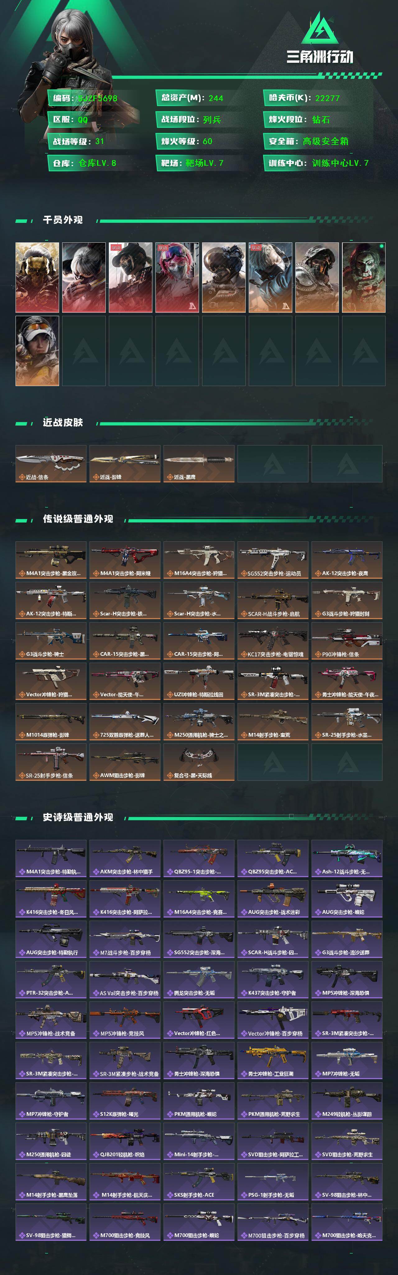 【SJZF5698】总资产(M):244M/哈夫币(K):22277K/哈夫币(K):22277K/传说枪皮数:28/全面战场等级:31_段位:列兵/烽火地带等级:60_段位:钻石/红狼-蚀金玫瑰/骇爪-水墨云图/露娜-黑·天际线/能天使午夜邮差/威龙-壮志凌云/送葬人·无题密令/深蓝-不破誓约/红狼-电锯惊魂/露娜-金牌射手/近战-信条/影锋/黑鹰/M4A1突击步枪-蚀金玫瑰/M4A1突击步枪-阿米娅/M16A4突击步枪-狩猎时刻/SG552突击步枪-运动员/AK12突击步枪夜鹰/AK-12突击步枪-特斯拉线圈/SCAR-H战斗步枪-铁艺苍穹/SCAR-H战斗步枪-水墨云图/SCAR-H战斗步枪-启航/G3战斗步枪-狩猎时刻/G3战斗步枪-骑士/CAR-15突击步枪-黑鹰坠落/CAR-15突击步枪-阿米娅/KC17突击步枪-电锯惊魂/P90冲锋枪-信条/Vector冲锋枪-狩猎时刻/Vector冲锋枪-能天使-午夜邮差/UZI冲锋枪-特斯拉线圈/SR-3M紧凑突击步枪-特斯拉线圈/勇士冲锋枪-能天使-午夜邮差/M1014霰弹枪-影锋/725双管霰弹枪-送葬人-无题密令/M250通用机枪-骑士之心/M14射手步枪-蛮荒/SR-25射手步枪-水墨云图/SR-25射手步枪-信条/AWM狙击步枪-影锋/复合弓·黑-天际线/M4A1突击步枪-特勤执行/AKM突击步枪林中猎手/QBZ95-1突击步枪-曙光/QBZ95-1突击步枪-ACE/ASh-12战斗步枪-无极限/K416突击步枪-冬日风情/K416突击步枪-阿萨拉特攻/M16A4突击步枪-竞赛选手/AUG突击步枪-战术迷彩/AUG突击步枪-蝮蛇/AUG突击步枪-特勤执行/M7战斗步枪-百步穿杨/SG552突击步枪深海恐惧/SCAR-H战斗步枪-囚徒/G3战斗步枪-流沙送葬/PTR-32突击步枪-ACE/AS Val突击步枪-百步穿杨/腾龙突击步枪-无垢/K437突击步枪-守护者/MP5冲锋枪深海恐惧/MP5冲锋枪-战术竞备/MP5冲锋枪-竞技风/Vector冲锋枪-红色彗星/Vector冲锋枪-百步穿杨/SR-3M紧凑突击步枪-英雄/SR-3M紧凑突击步枪-荒野求生/SR-3M紧凑突击步枪-战术竞备/勇士冲锋枪深海恐惧/勇士冲锋枪-工业狂潮/MP7冲锋枪-无垢/MP7冲锋枪-守护者/S12K霰弹枪-曙光/PKM通用机枪-蝮蛇/PKM通用机枪-荒野求生/M249轻机枪-丛影谍踪/M250通用机枪-囚徒/QJB201轻机枪-炽焰/Mini-14射手步枪-守护者/SVD狙击步枪-阿萨拉工艺/SVD狙击步枪-荒野求生/M14射手步枪-黑鹰坠落/ M14射手步枪-航天庆典/SKS射手步枪-ACE/PSG-1射手步枪-无垢/SV-98狙击步枪-林中猎手/SV-98狙击步枪-猎鳄行动/M700狙击步枪-竞技风/M700狙击步枪-蝮蛇/M700狙击步枪-百步穿杨/M700狙击步枪-哈夫克警备/AWM狙击步枪-无极限/AWM狙击步枪-流沙送葬/357左轮-幸运时刻/沙漠之鹰-曙光/复合弓-守护者/Vector冲锋枪-银灰金属/AK-12突击步枪-阿萨拉卫队/M870霰弹枪-阿萨拉卫队/AUG突击步枪-花岗岩/SV-98狙击步枪-花岗岩/S12K霰弹枪-海岸线/M870霰弹枪-地平线/R93狙击步枪-地平线/M4A1突击步枪-繁盛/AKM突击步枪-战术演练/AKM突击步枪-肃杀/QBZ95-1突击步枪-公平竞技/ASh-12战斗步枪-星链科技/ASh-12战斗步枪-哈夫克航天/ASh-12战斗步枪-繁盛/K416突击步枪-虎啸/K416突击步枪-一帆风顺/M7战斗步枪-捣蛋鬼/SG552突击步枪-2026/SG552突击步枪-贴花艺术/AK-12突击步枪-前沿科技/SCAR-H战斗步枪-荣耀列队/SCAR-H战斗步枪-黄昏/G3战斗步枪-战术演练/G3战斗步枪-主宰/PTR-32突击步枪-天网/CAR-15突击步枪-来财/腾龙突击步枪-雪崩/腾龙突击步枪-前沿科技/腾龙突击步枪-冰天雪地/K437突击步枪-天狼星/MP5冲锋枪-弄臣/MP5冲锋枪-虎啸/MP5冲锋枪-哈夫克卫队/P90冲锋枪-蛇年新春/P90冲锋枪-浅鲨小队/P90冲锋枪-黄昏/P90冲锋枪-捣蛋鬼/Vector冲锋枪-先锋/Vector冲锋枪-街头涂鸦/Vector冲锋枪-蜂窝科技/UZI冲锋枪-前沿科技/UZI冲锋枪-亚特兰蒂斯/SMG-45冲锋枪-哈夫克卫队/SMG-45冲锋枪-行动开启/SMG-45冲锋枪-幻影结构/SMG-45冲锋枪-天网/SR-3M紧凑突击步枪-雪崩/勇士冲锋枪-前沿科技/勇士冲锋枪-主宰/勇士冲锋枪-冰天雪地/M1014霰弹枪-幻影结构/S12K霰弹枪-战术演练/M870霰弹枪-蛇年新春/PKM通用机枪-英雄/M249轻机枪-冰天雪地/M250通用机枪-虎啸/M250通用机枪-天网/QJB201轻机枪-黄昏/QJB201轻机枪-哈夫克卫队/Mini-14射手步枪-蛇年新春/Mini-14射手步枪-荣耀列队/SKS射手步枪-弄臣/SKS射手步枪-雪崩/SR-25射手步枪-开拓/SR-25射手步枪-蜂窝科技/SR-9射手步枪-街头涂鸦/PSG-1射手步枪-主宰/SV-98狙击步枪-星链科技/SV-98狙击步枪-哈夫克航天/SV-98狙击步枪-精英联盟/R93狙击步枪-远航/G18-星链科技/G18-哈夫克航天/93R-蜂窝科技/M4A1突击步枪-纯白涂装/K416突击步枪-纯白涂装/M700狙击步枪-纯白涂装/PKM通用机枪-黄铜/AKS-74U突击步枪-监察/CAR-15突击步枪-监察/MP5冲锋枪-监察/R93狙击步枪-监察/R93狙击步枪-猛兽/AKM突击步枪-噬菌体/勇士冲锋枪-噬菌体/M16A4突击步枪-斑马/M4A1突击步枪-粉色涂装/M4A1突击步枪-高雅黑/M4A1突击步枪-蛛网/M4A1突击步枪-几何碎片/M4A1突击步枪-海色/AKM突击步枪-彩墨喷涂/QBZ95-1突击步枪-高雅黑/QBZ95-1突击步枪-海浪/QBZ95-1突击步枪-三角洲力量/QBZ95-1突击步枪-海色/QBZ95-1突击步枪-2026/腾龙突击步枪-三角洲力量/K416突击步枪-几何迷彩/K416突击步枪-高雅黑/M16A4突击步枪-三角洲力量/M16A4突击步枪-山林猎人/M16A4突击步枪-高雅黑/AUG突击步枪-浅蓝涂装/M7战斗步枪-红色涂装/SG552突击步枪-浅蓝涂装/SG552突击步枪-精钢/SG552突击步枪-海浪/SG552突击步枪-彩墨喷涂/AK-12突击步枪-冰川/AK-12突击步枪-变色龙/SCAR-H战斗步枪-数码迷彩/SCAR-H战斗步枪-电路图/G3战斗步枪-高雅黑/G3战斗步枪-山林猎人/PTR-32突击步枪-黄蜂/PTR-32突击步枪-条纹/PTR-32突击步枪-典雅/CAR-15突击步枪-几何碎片/CAR-15突击步枪-电路