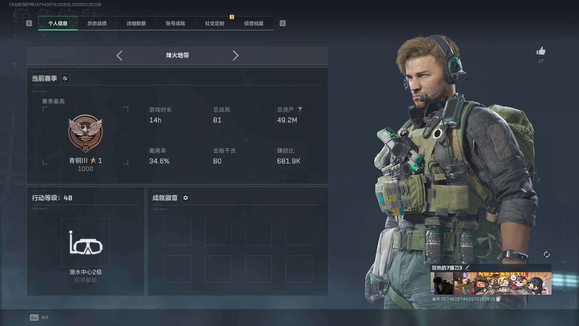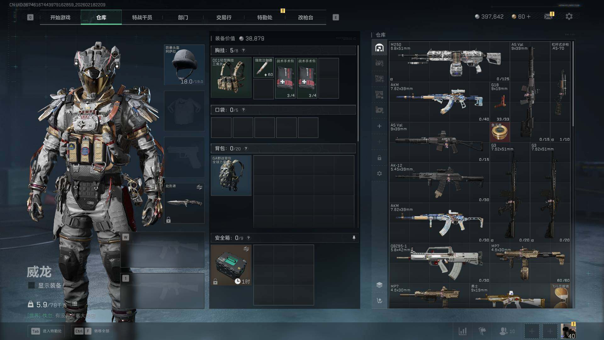 【SJ7970】总资产(M):49M/哈夫币(K):397K/哈夫币(K):397K/传说枪皮数:5/全面战场等级:21_段位:军士长/烽火地带等级:40_段位:青铜/威龙-凌霄戍卫/近战-处刑者/黑鹰/QBZ95-1突击步枪-凌霄戍卫/Vector冲锋枪-夜莺/MK4冲锋枪-夜莺/Mini-14射手步枪-夜莺/SKS射手步枪-骑士/QBZ95-1突击步枪-曙光/K416突击步枪-冬日风情/Vector冲锋枪-阿萨拉文明/SMG-45冲锋枪-阿萨拉特攻/M14射手步枪-工业狂潮/M700狙击步枪-竞技风/K416突击步枪-星之彩/ASh-12战斗步枪-星链科技/ASh-12战斗步枪-哈夫克航天/K416突击步枪-一帆风顺/SG552突击步枪-2026/K437突击步枪-生存指令/MK47突击步枪-精英联盟/MP5冲锋枪-弄臣/MP5冲锋枪-哈夫克卫队/Vector冲锋枪-先锋/Vector冲锋枪-前沿科技/SMG-45-行动开启/勇士冲锋枪-冰天雪地/M249轻机枪-冰天雪地/QJB201轻机枪-哈夫克卫队/Mini-14射手步枪-荣耀列队/SKS射手步枪-弄臣/SR-25射手步枪-开拓/G18-星链科技/G18-哈夫克航天/M4A1突击步枪-粉色涂装/M4A1突击步枪-高雅黑/M4A1突击步枪-海色/QBZ95-1突击步枪-高雅黑/QBZ95-1突击步枪-海色/QBZ95-1突击步枪-2026/QBZ191突击步枪-三角洲力量/K416突击步枪-高雅黑/M16A4突击步枪-高雅黑/AUG突击步枪-浅蓝涂装/M7战斗步枪-红色涂装/SG552突击步枪-浅蓝涂装/SG552突击步枪-海浪/SCAR-H战斗步枪-数码迷彩/G3战斗步枪-高雅黑/PTR-32突击步枪-黄蜂/MP5冲锋枪-海色/MP5冲锋枪-黄蜂/Vector冲锋枪-几何迷彩/UZI冲锋枪-海色/野牛冲锋枪-高雅黑/M1014霰弹枪-高雅黑/M1014霰弹枪-海浪/QJB201轻机枪-典雅/SVD狙击步枪-高雅黑/SR-25射手步枪-黄蜂/SV-98狙击步枪-红色涂装/沙漠之鹰-高雅黑/G17-2026/挂饰-黄金视野/挂饰-重装记者/挂饰-崩岩重炮/挂饰-暗行哨兵/挂饰-福禄/挂饰-聚宝盆/挂饰-仪典匕首/挂饰-关山难越/挂饰-起舞的女郎/挂饰-紧急撤离/挂饰-麻将