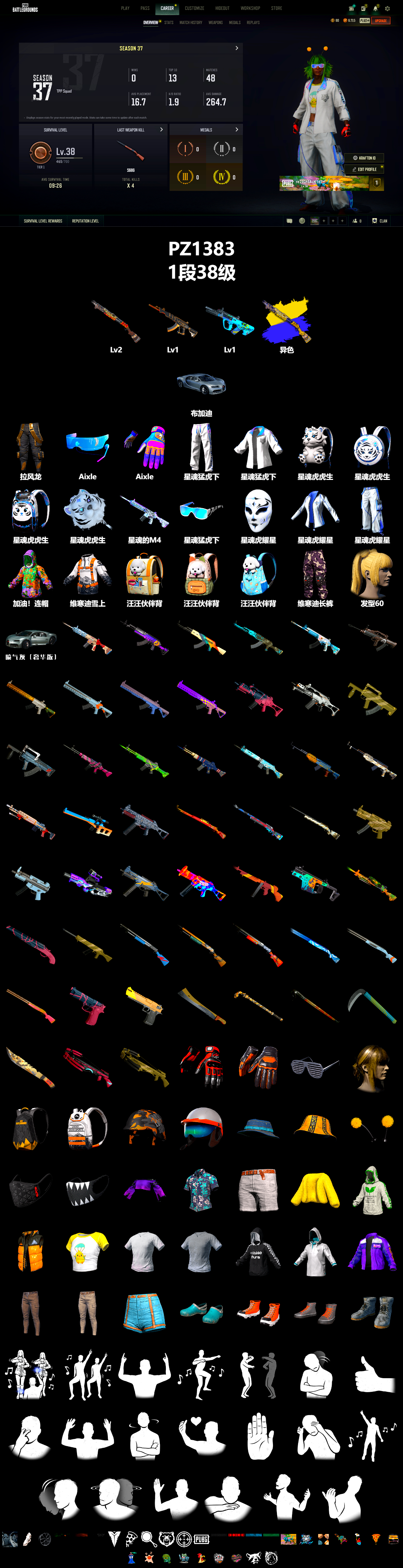 编号PZ1383皮肤:免费版 2级烈日灼烧-S1897 1级妖魔之触ACE 1级GD-AUG S1897(异色) 布加迪奢华版跑车 拉风龙 Aixleft Aixleft 车漆 星魂猛虎下山运动裤 星魂猛虎下山运动夹克 星魂虎虎生威背包(3级) 星魂虎虎生威背包(2级) 星魂虎虎生威背包(1级) 星魂虎虎生威平底锅 星魂的M416 星魂猛虎下山滑雪镜 星魂虎耀星辉面具 星魂虎耀星辉瑜伽上衣 星魂虎耀星辉工装裤 加油!连帽卫衣 维寒迪雪上运动夹克 维寒迪长裤 发型60 汪汪伙伴背包(1级) 汪汪伙伴背包(2级) 汪汪伙伴背包(3级) 雪国风光 - M416 魔女之力 - Beryl M762 标准猎手 - AKM 灵魂枷锁 - AKM 大理石宝藏 - ACE32 分秒必争 - QBZ 金色落叶 - Mk47 Mutant 灰色系 - Mk47 Mutant 淡雅之力 - Mk47 Mutant 分形碎片 - Mk47 Mutant 标准猎手 - G36C 分形几何 - G36C 标准猎手 - Groza 无尽迷宫 - Groza 水手 - K2 无拘来世 - K2 皇家舰队 - K2 大理石宝藏 - SLR 金色落叶 - SKS 幸运骑士 - SKS 雪国风光 - Mk14 标准猎手 - VSS 余音环绕 - UMP [战场痕迹] 镀金枪儿响叮当 - Kar98k G-DRAGON - M24 幸运骑士 - M24 标准猎手 - MP5K 灰色系 - MP5K 竞速之道 - P90 钴蓝呼号 - UMP 熔岩灯 - UMP 淡雅之力 - 汤姆逊冲锋枪 魔女之力 - Vector 无拘来世 - DP-28 标准猎手 - 锯短型霰弹枪 标准猎手 - S12K 钴蓝呼号 - S1897 水手 - S1897 这不是玩具 - S1897 波涛荡漾 - S686 灰色系 - S686 华夫饼 - S686 标准猎手 - P92 沙漠烈阳 - 沙漠之鹰 陶土质感大砍刀 PUBG信条钢管 陶土质感撬棍 淡雅之力 - 镰刀 妖魔大砍刀 恶战 - 十字弩 标准猎手 - 十字弩 准备就绪手套 维寒迪雪上运动手套 百叶窗太阳镜(银色) 发型92 勇往直前背包(1级) 维寒迪雪上运动背包(1级) PUBG信条 - 头盔(2级) 维寒迪雪上运动 - 头盔(1级) 夏日渔夫帽(蓝绿色) 寄情尼罗河渔夫帽 蜂刺甜心头饰 准备就绪口罩 治安队外套 花衬衫(蓝绿色) 夏日短裤(灰色) 小小鸡仔外套 生存练习生连帽卫衣 PUBG信条马甲 小小鸡仔T恤 T 恤 (白色) T 恤 (灰色) 雨中漫步夹克 PNC 2025 夹克 战斗裤 (棕色) 战斗裤 (卡其色) 小小鸡仔短裤 沙滩鞋(蓝绿色) 维寒迪雪上运动短靴 准备就绪运动鞋 高帮运动鞋 Dark Arts(第1部分) 胜利之舞142 #1 胜利之舞 特殊问候 嫉妒 棒棒哒 挑衅 投降 不耐烦 谢谢 停止! 抖缩 庆祝 同意 反对 你好 你完蛋了 耸肩 过来 生存等级:1段