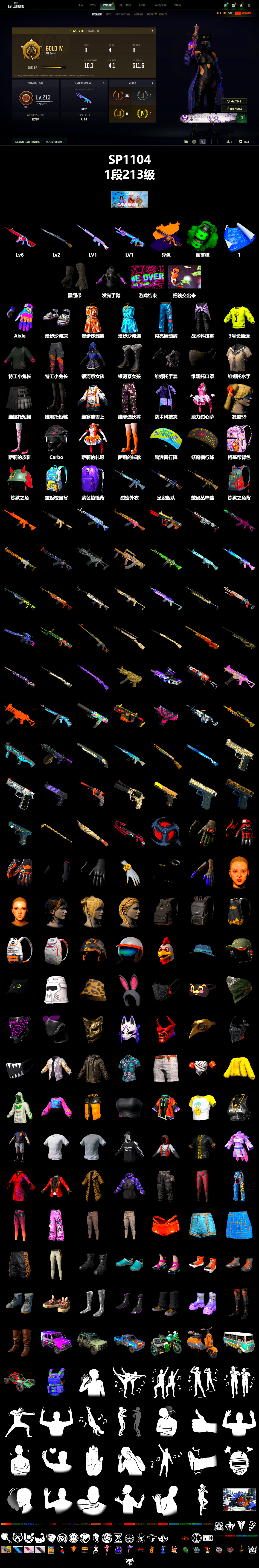 编号SP1104皮肤:6级无信号M4 2级猛虎98k 1级玩偶炮 1级魔咒之力Mk12 无信号(异色) 翡翠色烟雾弹 张图纸 黑绷带 发光手臂 Aixleft 漫步沙滩凉鞋 漫步沙滩连衣裙(棕色) 漫步沙滩连衣裙(蓝色) 闪亮运动裤 战术科技裤 3号长袖运动衫 特工小兔长袖上衣 特工小兔长裤 银河系女孩 银河系女孩 维娜托手套 维娜托口罩 维娜托水手 维娜托短裙 维娜托短靴 维寒迪雪上运动夹克 维寒迪长裤 战术科技夹克 魔力甜心萨莉的礼服(粉红色) 萨莉的皮鞋 萨莉的礼服 萨莉的长靴 发型59 把钱交出来 游戏结束 Carbon Fiber Commando - Helmet (Level 2) 炼狱之角 重返校园背包(2级) 紫色棱镜背包(3级) 柯基帮背包(3级) 炼狱之角背包(2级) 踏浪而行降落伞 妖魔横行降落伞 粗糙 (橙色) - M416 数码沙漠迷彩 - M416 [战场痕迹] 青花之力 - Beryl M762 魔力甜心萨莉的挚友 - AKM 嗜血者 - AUG 三重彩 - SCAR-L 甜蜜外衣 - M16A4 皇家舰队 - M16A4 数码丛林迷彩 - M16A4 灵魂枷锁 - Mk47 Mutant 金色落叶 - Mk47 Mutant 无尽迷宫 - Mk47 Mutant 魔幻六边形 - G36C 山花烂漫 - Groza 无拘来世 - K2 大理石宝藏 - SLR 彩虹之上 - SLR [战场痕迹] 夺目寒光 - SKS 镀金 - SKS 幸运骑士 - SKS 甜蜜外衣 - Mini14 彩虹之上 - Mini14 数码沙漠迷彩 - Mini14 雪国风光 - Mk14 紫色雨滴 - VSS 蟒蛇花园 - QBU 致命快递 - 德拉贡诺夫 数码沙漠迷彩 - Win94 数码沙漠迷彩 - Kar98k 镀金 - AWM 数码丛林迷彩 - AWM [战场痕迹] 湮灭 - M24 幸运骑士 - M24 无拘来世 - 莫辛纳甘步枪 标准猎手 - MP5K 竞速之道 - P90 方形铬印 - PP-19 Bizon 彩虹之上 - UMP 粗糙 (橙色) - UMP 拼图 - 汤姆逊冲锋枪 抽象派 - MP9 嗜血者 - Vector 水手 - Micro UZI [战场痕迹] 无重力 - M249 无拘来世 - DP-28 双色 - DBS 海藻自己上 - O12 数码沙漠迷彩 - 锯短型霰弹枪 波涛荡漾 - S12K 水手 - S1897 波涛荡漾 - S686 数码沙漠迷彩 - P92 三重彩 - P92 三重条纹 - 沙漠之鹰 水手 - R1895 数码沙漠迷彩 - R45 沙漠烈阳 - P1911 数码沙漠迷彩 - P18C 数码丛林迷彩 - P18C 圣诞之力 - P18C PUBG信条钢管 妖魔大砍刀 恶战 - 十字弩 切割狂潮 - 平底锅 队长的迷彩手套 准备就绪手套 维寒迪雪上运动手套 字节意志手套 PGC 2022 战术科技手套 漫步沙滩手环 豹子精手饰 般若手套 女性面容16 漫步沙滩妆容 发型26 发型85 发型83 褪色帆布背包(2级) 陈旧皮革背包(2级) 勇往直前背包(1级) 维寒迪雪上运动背包(1级) 红眼神枪手背包(1级) PUBG信条 - 头盔(2级) 维寒迪雪上运动 - 头盔(1级) El Pozo 狂鸡队吉祥物头套 夏日渔夫帽(蓝绿色) 队长的迷彩鸭舌帽 卡通袭击者针织帽 沙滩作战部队水桶 豹子精渔夫帽 特工小兔发带 准备就绪口罩 卡通袭击者眼罩 队长的迷彩面巾 字节意志面具 PGC 2022 战术科技面罩 豹子精面具 九尾狐面具 般若面具 黄铜鸟嘴医生面具 Carbon Fiber Commando Face Mask 炫酷反光夹克 邓肯的潜行者夹克 花衬衫(蓝绿色) 夏日短裤(灰色) 橙汁上衣 小小鸡仔外套 生存练习生连帽卫衣 卡通袭击者上衣 PUBG信条马甲 字节意志上衣 字节意志夹克 小小鸡仔T恤 光彩夺目露脐背心(黑色) El Pozo 狂鸡队吉祥物玩偶服 T 恤 (白色) T 恤 (灰色) 潜行连帽卫衣 豹子精上衣 九尾狐服饰 般若服饰 黄铜鸟嘴医生夹克 豹子精夹克 暗影突袭者夹克 邓肯的潜行者长裤 条纹长裤(红色) 卡通袭击者牛仔裤 字节意志紧身裤 窒息的爱长裤 战斗裤 (棕色) 战斗裤 (卡其色) 橙汁短裤 小小鸡仔短裤 海洋小姐短裙 豹子精短裤 黄铜鸟嘴医生裤 邓肯的潜行者短靴 沙滩鞋(蓝绿色) 字节意志运动鞋 维寒迪雪上运动短靴 准备就绪运动鞋 高帮运动鞋 卡通袭击者步鞋 寰宇侠的战靴 PGC 2022 战术科技短靴 豹子精便鞋 九尾狐短靴 般若足具 黄铜鸟嘴医生靴 “间谍软件” 乌阿斯吉普车 “界限粉碎者” 恣马 “像素风大冒险” 罗尼 “双龙会” 摩托车 “小兔快递配送员” 小型摩托车 “角鲨队队车” 迷你巴士 “炼狱之角” 双人越野车 海岸突击队防弹衣(3级) 冷静下来 胜利之舞81 胜利之舞142 Victory Dance - 8th Anniversary 胜利之舞150 三振出局! #1 胜利之舞36 特殊问候 嫉妒 棒棒哒 投降 不耐烦 谢谢 停止! 抖缩 庆祝 踢 愤怒 同意 你好 你完蛋了 耸肩 过来 功夫大师 雪景球 生存等级:1段