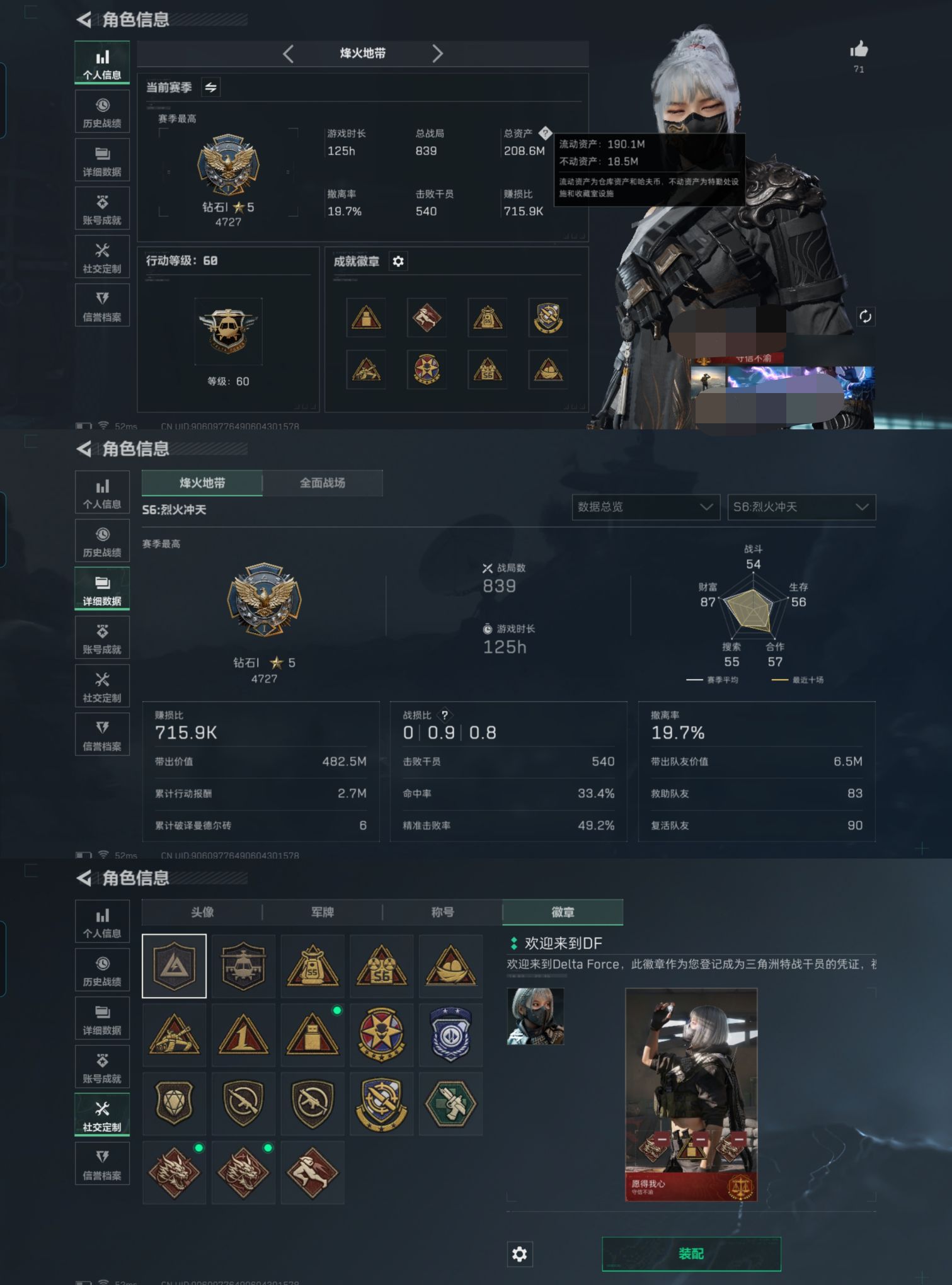 ZMSJ681【满级号 仓库价值208.6M 哈夫币135M】 三端互通Q-烽火地带等级60-烽火地带段位:钻石 【干员皮肤】 骇爪-水墨云图 【枪皮】 M4A1突击步枪-蚀金玫瑰 M4A1突击步枪-阿米娅 M16A4突击步枪-狩猎时刻 AK-12突击步枪-夜鹰 SCAR-H战斗步枪-水墨云图 CAR-H战斗步枪-启航 G3战斗步枪-骑士 CAR-15突击步枪-阿米娅 Vector冲锋枪-能天使-午夜邮差 Vector冲锋枪-狩猎时刻 UZI冲锋枪-特斯拉线圈 SMG-45冲锋枪-骑士 SR-3M紧凑突击步枪-特斯拉线圈 勇士冲锋枪-能天使-午夜邮差 复合弓-黑·天际线