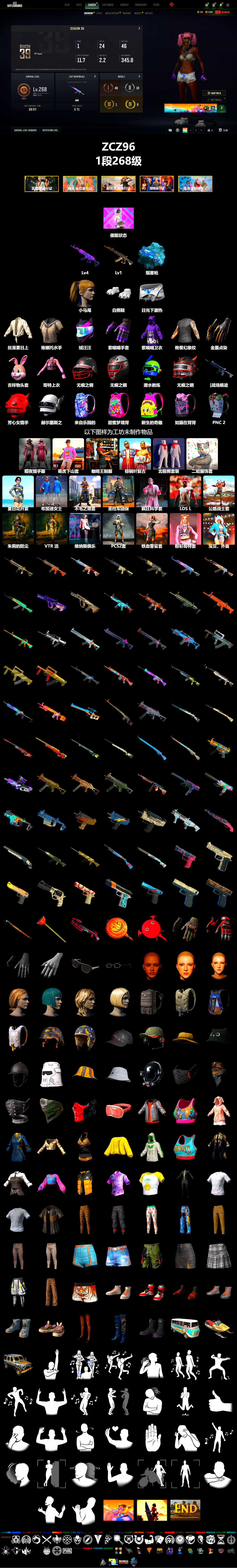 编号ZCZ96皮肤:4级美杜莎762 1级妖魔之触ACE 蓝色魔法迷雾-M79 白熊鞋 小马尾 日光下澈热带短裤 丝滑夏日上衣(白色) 维娜托水手 绒汪汪 紫喵喵手套 紫喵喵卫衣 晚餐幻象纹身 金墨点染 小兔学院 哥特上衣 [战场痕迹] M416 催眠状态 潜水教练 - 头盔(3级) 无痕之钢 - 头盔(3级) 无痕之钢 - 头盔(2级) 无痕之钢 - 头盔(1级) 芳心女猎手 - 头盔(3级) 赫尔墨斯之翼 - 头盔(3级) 来自乐园的问候背包(3级) 甜蜜梦境背包(1级) 新生的奇趣背包(2级) 如猫在背背包(3级) PNC 2023 背包(3级) 暗夜猎手服饰套装 萌虎下山套装 咖啡王制服套装 棕榈叶复古套装 北极熊套装 二哈服饰套装 夏日花开紧身衣套装 布加迪女士套装 不毛之地套装 圣柱军团保安套装 疯狂科学套装 LOS LEONES 主场队服套装 公路战士套装 朱莉的防尘外套套装 VTR 活跃者套装 维纳斯俱乐部套装 PCS2套装 铁血警官套装 粉彩哥特套装 宝贝,外面冷套装 无慈悲 - M416 地狱火 - M416 雪国风光 - M416 数码沙漠迷彩 - M416 PCS2 金色成就 - Beryl M762 [战场痕迹] 破碎元素 - AKM 竞速之道 - AKM 金色落叶 - AKM 多彩科技猫 - AUG 暗影之策 - AUG G-DRAGON - SCAR-L 补丁 - SCAR-L 镀银 - SCAR-L 粗糙 (橙色) - SCAR-L 华夫饼 - M16A4 分形几何 - QBZ 灰色系 - Mk47 Mutant 心跳掠夺者 - Mk47 Mutant 无尽迷宫 - Mk47 Mutant 钴蓝呼号 - G36C 无尽迷宫 - Groza 标准猎手 - Groza 镀金 - Groza 钴蓝呼号 - K2 [战场痕迹] 漫彩四溢 - SLR 魔力宝贝 - SLR [战场痕迹] 夺目寒光 - SKS 幸运骑士 - SKS [战场痕迹] 破碎元素 - Mini14 热浪 - Mk12 标准猎手 - VSS 致命快递 - 德拉贡诺夫 余音环绕 - UMP 礼物环绕 - Kar98k 数码沙漠迷彩 - Kar98k 魔女之力 - AWM 镀金 - AWM 海藻在路上 - M24 幸运骑士 - M24 海洋哑光(蓝色) - 莫辛纳甘步枪 海兽 - 莫辛纳甘步枪 疯狂收割者 - MP5K 竞速之道 - P90 镀金 - UMP 游猎之旅 - UMP 镀银 - UMP 雪国风光 - 汤姆逊冲锋枪 心跳掠夺者 - MP9 抽象派 - MP9 魔女之力 - Vector 海狼鱼 - Vector 锁链帮 - Micro UZI 钴蓝呼号 - Micro UZI 数码沙漠迷彩 - Micro UZI 灰色系 - DBS 标准猎手 - 锯短型霰弹枪 数码沙漠迷彩 - 锯短型霰弹枪 无尽迷宫 - S12K 标准猎手 - S12K 钴蓝呼号 - S1897 灰色系 - S686 标准猎手 - P92 数码沙漠迷彩 - P92 沙漠烈阳 - 沙漠之鹰 数码沙漠迷彩 - R45 指绘 - P1911 愉悦的绿松色 - P1911 钴蓝呼号 - P18C 数码沙漠迷彩 - P18C 数码丛林迷彩 - P18C 陶土质感撬棍 马桶塞 恶战 - 十字弩 碎瓜者 - 平底锅 斯帕奇 - 平底锅 队长的迷彩手套 准备就绪手套 PGC 2022 战术科技手套 都市耀光戒指 精致的眼镜 都市耀光墨镜 女性面容20 女性面容7 漫步沙滩妆容 发型11 发型58 发型87 发型73 生存专家背包(3级) 神枪手背包(1级) 破碎硬壳背包(1级) 胜利啦啦队背包(1级) PUBG信条 - 头盔(2级) 好梦星空 - 头盔(1级) 准备就绪鸭舌帽 队长的迷彩鸭舌帽 渔夫帽 卡通袭击者针织帽 骑师帽 沙滩作战部队水桶 寄情尼罗河渔夫帽 垂钓大师渔夫帽 无重力宇航头盔 准备就绪口罩 PCS2 隐形生存者面巾 迷雾追踪者口罩 队长的迷彩面巾 猩红猎手面具 美美的睡眠眼罩 准备就绪夹克 咆哮之力街头风背心 小兔叽上衣 巨龙之母服饰 禁忌闪光夹克 夏日豹纹比基尼 小小鸡仔外套 生存练习生连帽卫衣 皇室摔跤手上衣 黑龙长款大衣 铁血警官的制服 卡通袭击者上衣 PUBG信条马甲 涂鸦T恤 小小鸡仔T恤 黑龙衬衫配长裤 T 恤 (白色) T 恤 (灰色) 都市耀光夹克 绒汪汪长裤 准备就绪长裤 胡萝北下装 卡通袭击者牛仔裤 坚持到底长裤 战斗裤 (棕色) 战斗裤 (卡其色) 小小鸡仔短裤 太阳花瓣牛仔短裤 PCS2 弹药库短裤 皇室双腰带铅笔裙 格纹裙(法兰绒灰) 极限追逐者短裤 都市耀光宽松长裤 Horse King的老虎短裤 兔子帆布鞋 卡通学院运动鞋 幸运怪盗皮鞋 准备就绪运动鞋 高帮运动鞋 卡通袭击者步鞋 精致鞋与丝袜(黑色) 巨龙之母长靴 暗影突袭者短靴 “角鲨队队车” 迷你巴士 “雪橇骑手” 雪地摩托 “亲吻太阳” 乌阿斯吉普车 尴尬的提问 Dark Arts(第1部分) 胜利之舞152 冷静下来 胜利之舞112 退后! 胜利之舞21 #1 胜利之舞37 特殊问候 嫉妒 诶嘿~ 棒棒哒 挑衅 投降 不耐烦 谢谢 停止! 抖缩 庆祝 同意 大厅姿势3 反对 你好 大厅姿势2 大厅姿势1 你完蛋了 耸肩 过来 我在忙 驶向夕阳 落幕 生存等级:1段